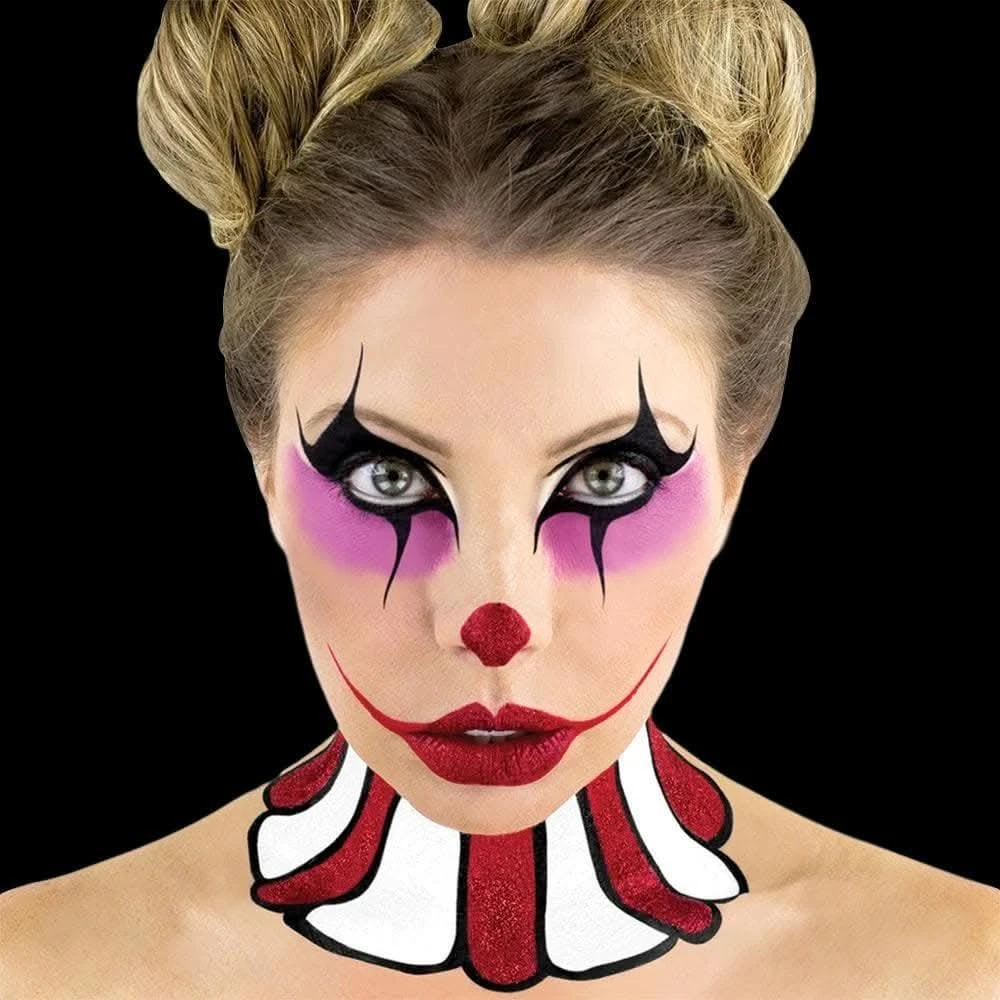 | You can be a happy Clown or a creey one with this cool Harlequin makeup kit! Comes with red, black, hot pink, white water-activated/ activated makeup, red glitter. Also includes a glitter adhesive sponge and two makeup brushes. Instructions included. |