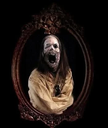 Merging two classic horror genres gets one unforgettable startle scare… the Zombie Asylum Mirror! Get maximum bang for your scare buck with this gothic, ornate, and seemingly innocent mirror that suddenly comes alive with a horrific vision sure to wet the drawers of even the toughest of your haunt visitors. Whether your scene is populated by raving zombies, or if your theme is a mad house/insane asylum, this high quality prop is the big scare payoff you’ve been looking for.Â