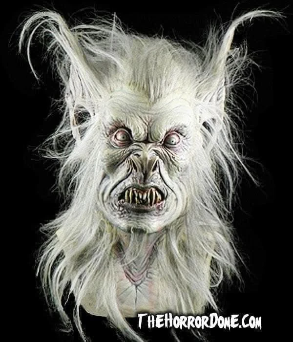 This Vampire Wolf Halloween mask features hand-laid hair and hand painted details. A true work of art, this Horror Dome original will be a main part of an unforgettable Halloween costume. With intensely focused, maniacal eyes, and a mouth filled with long thin teeth, he’s truly a grisly sight to behold. Grey wolf hair and tough pale gray skin round out his look.